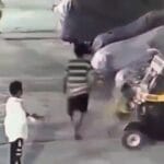 Imagens de câmeras de segurança registraram o momento em que Sandeep Pawar agarra uma criança de 4 anos pelos pés…