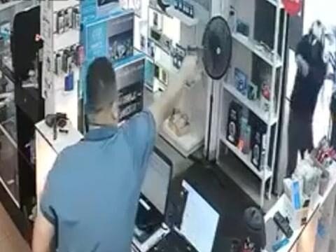 O comparsa fugiu ileso e continua sendo procurado. O motociclista escapou sem ser roubado.